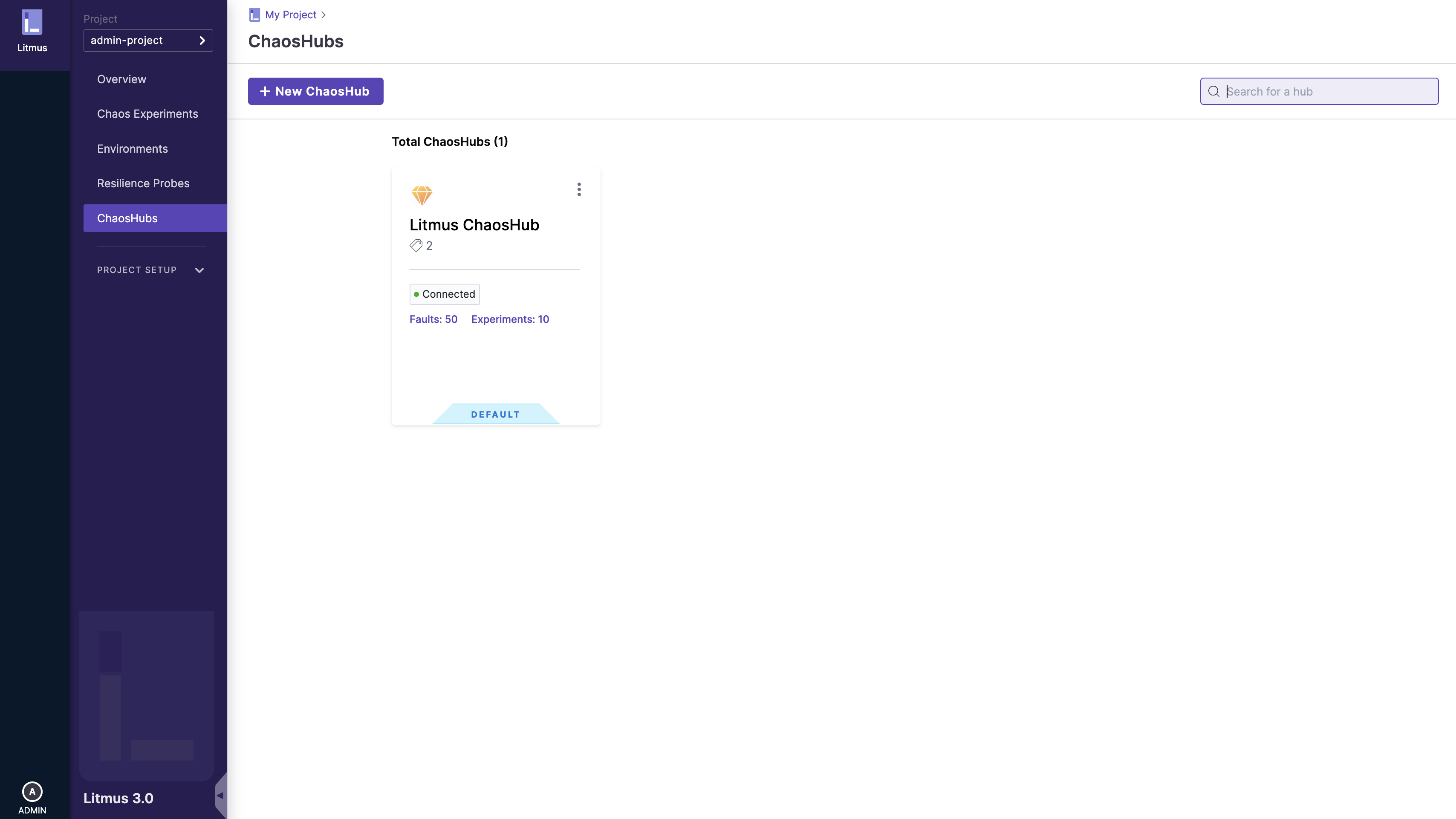 By default, a public ChaosHub is provided when the ChaosCenter is installed for the first time.